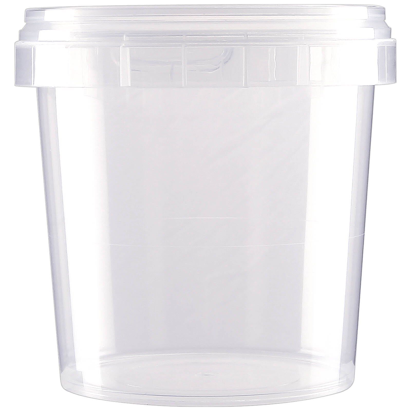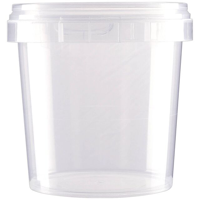 Packaging cups of clear plastic, including matching lid. Qualified for food handling.