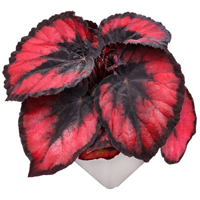 Begonia 'Red Heart', also known as King Begonia 'Red Heart' or Rex Begonia 'Red Heart', is an exquisite ornamental plant characterised by its striking, heart-shaped leaves in deep dark red with a characteristic green centre. This species belongs to the Begoniaceae family and is native to tropical and subtropical regions. In its natural habitat, it enjoys humidity and shade, making it an ideal choice for keeping in terrariums. Begonia 'Red Heart' prefers semi-shady to shady locations with indirect light and requires high humidity, which makes it easier to care for in a terrarium. Its soil should be well-drained to avoid waterlogging, while moderate but regular watering will keep the plant healthy.
