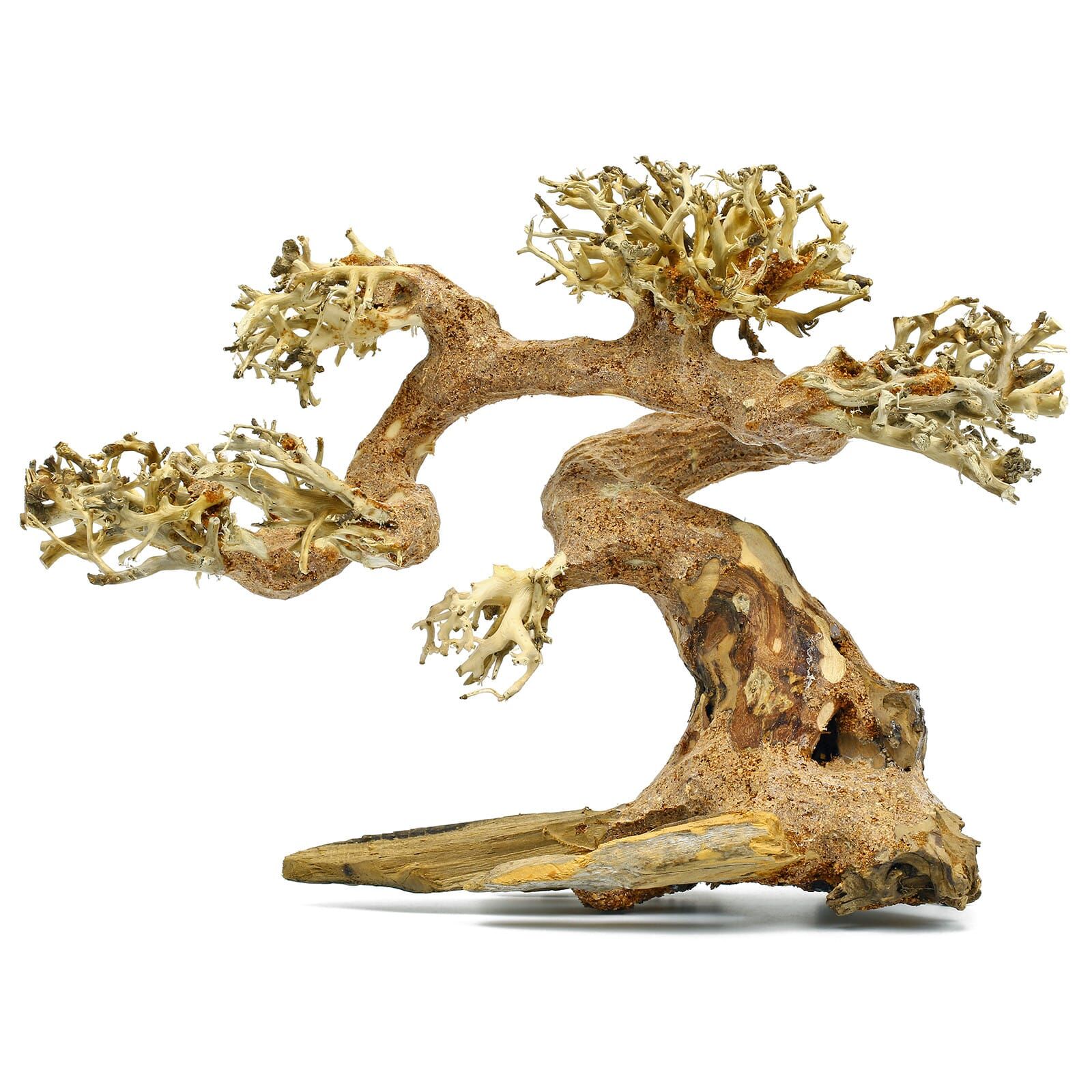 This intricately handcrafted bonsai is ideal for aquascaping. The strongly curved main trunks give the impression that there is a talon arm trailing in the aquarium. This creates a special depth effect. The fine branches can be planted with moss or other small epiphytes to enhance a natural impression.