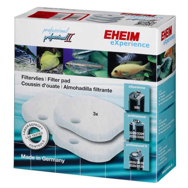 The filter mats are uniquely usable. The EHEIM filter fleeces are available in 2 different designs, which are each tailored to the individual filters (eXperience / professional 150, 250, 250 T and eXperience / professional 350). The scope of supply includes 3 filter fleeces.