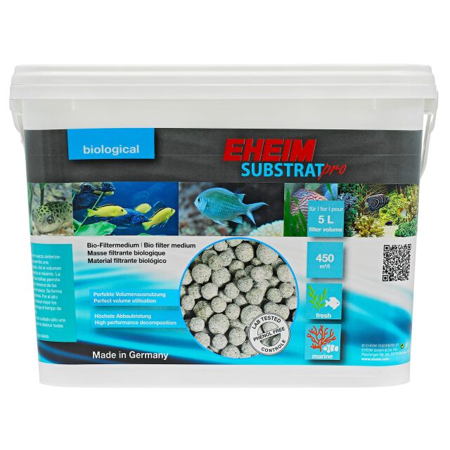 The EHEIM SUBSTRATpro is an optimized bio-filter medium with perfect volume utilization, long service life and maximum degradation. It consists of spherically sintered quartz. The spherical shape allows a high bulk density. Thus, the volume in the filter can be fully utilized. In addition, the surface of the beads ensures intensive settlement of the important purification bacteria. It forms a dense bacterial lawn. Due to the high number of bacteria also nitrite pollution peaks are better reduced and the service life of the filter material is extended.