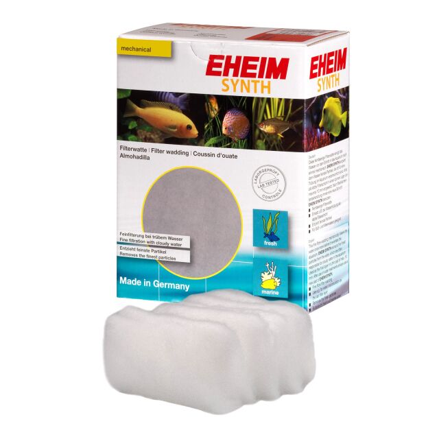 This fine fibre filter wadding once more cleans the water mechanically before re-entry into the aquarium. After a medication treatment a new layer of EHEIM SYNTH should be used.
