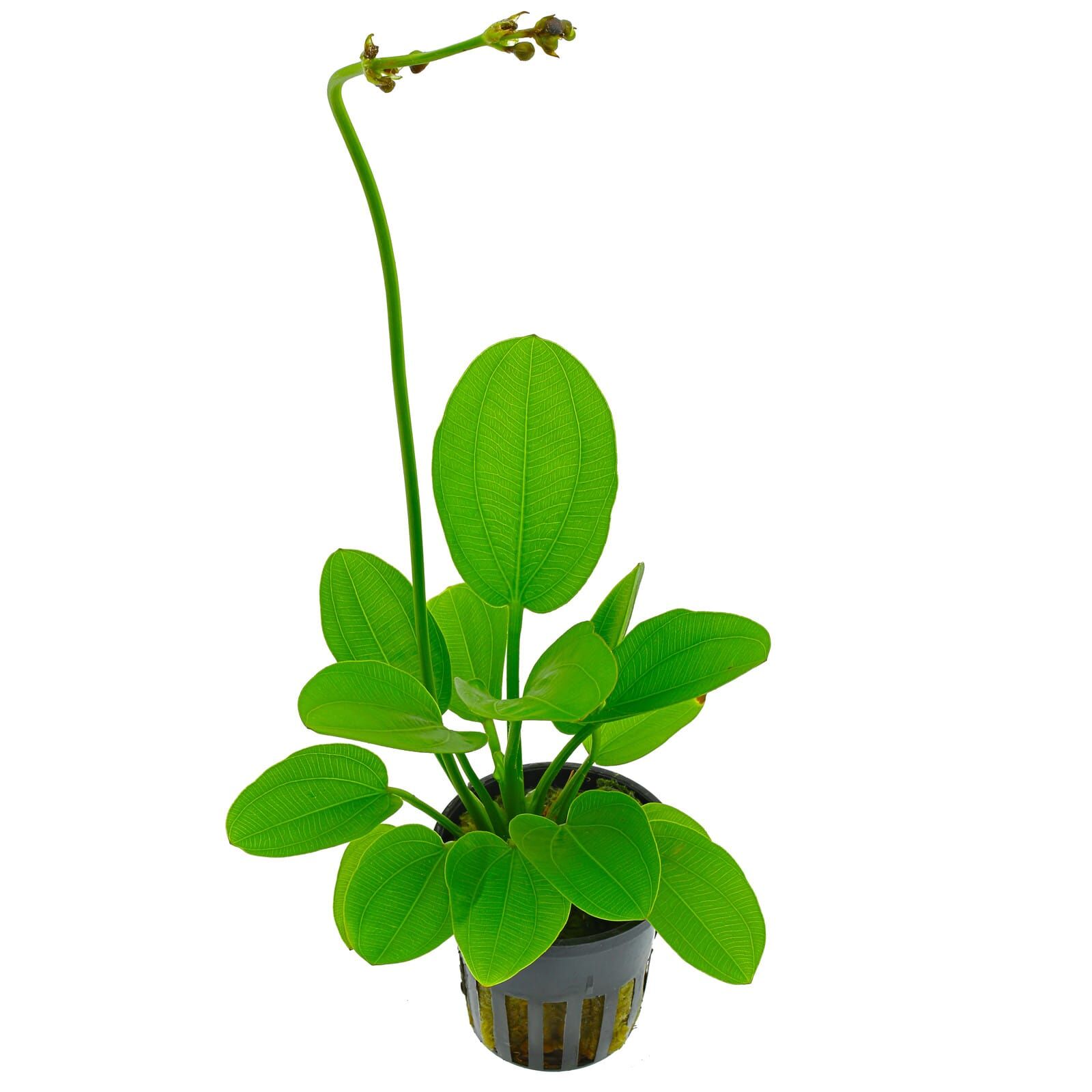 This plant is mostly delivered in its emersed (terrestrial) stage, with more roundish, longer stalked leaves. Planted into the aquarium, it will develop its typical submerged growth habit.