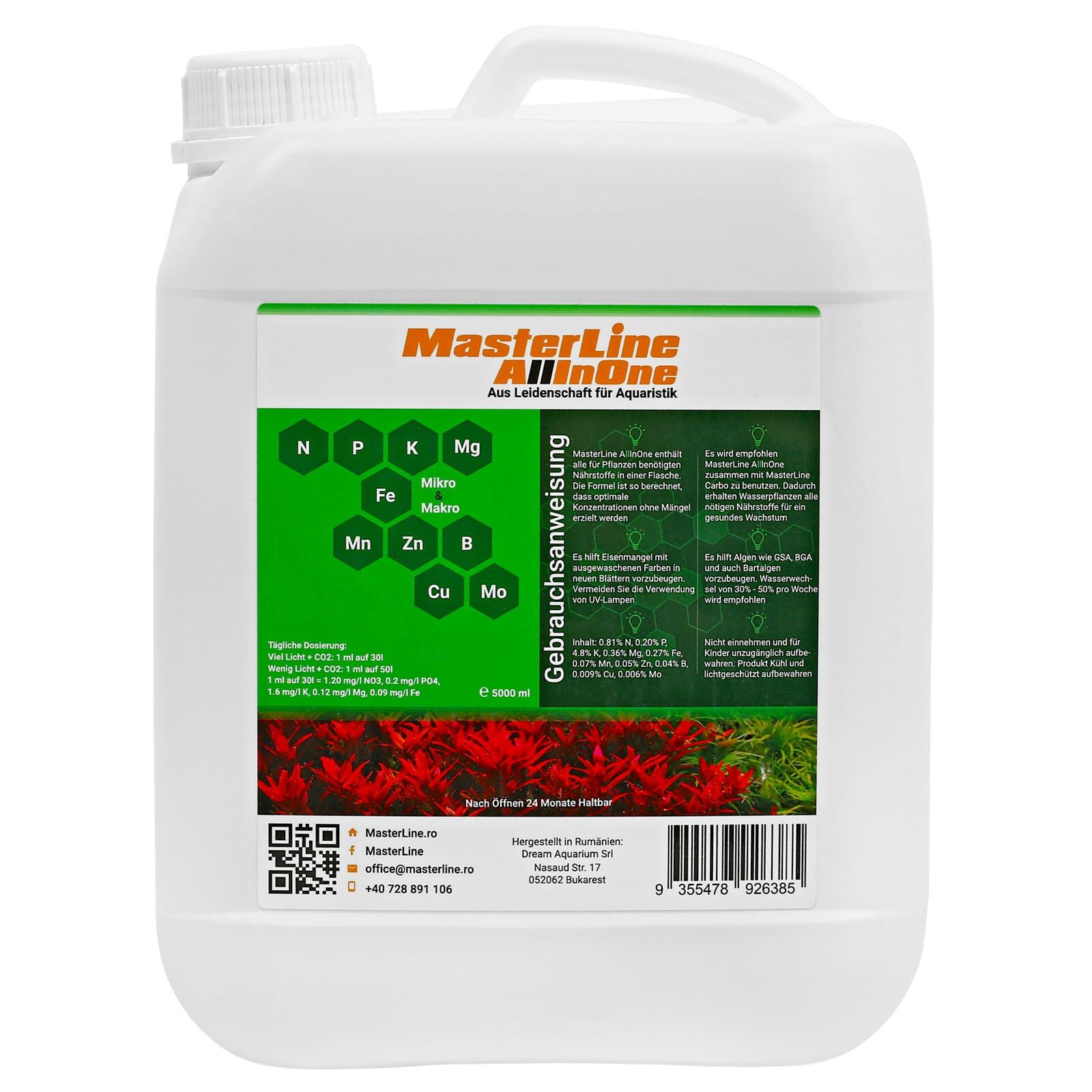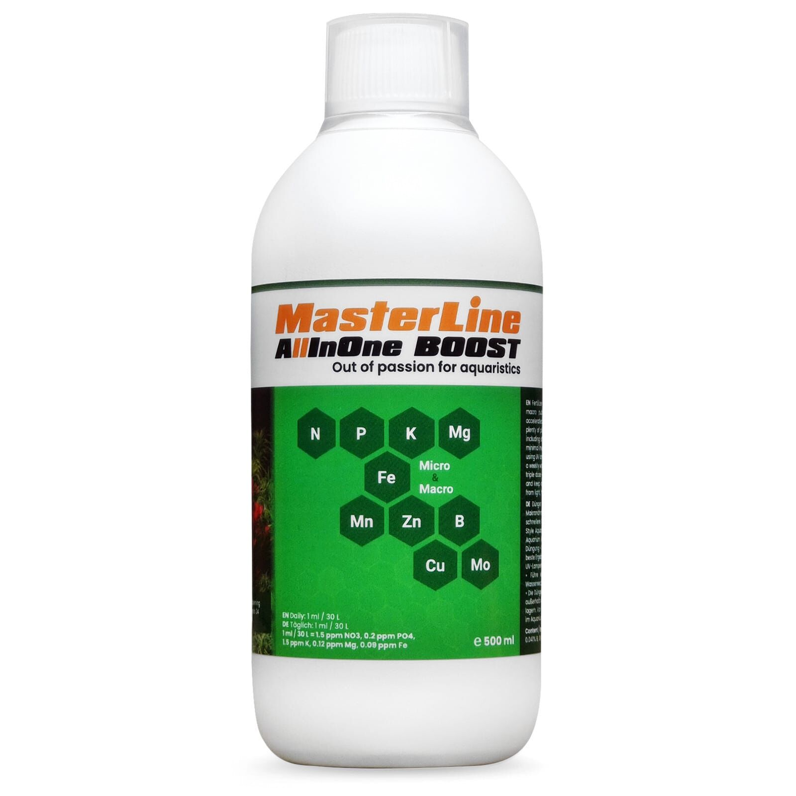 MasterLine All in One Boost are concentrated micro- and macronutrient combination fertilisers for aquatic plants. They contain nitrogen, phosphorus, potassium, magnesium, iron, manganese, zinc, boron, copper and molybdenum. It is recommended to use Masterline All in One Boost together with MasterLine Carbo. This way the aquatic plants have all the nutrients they need for healthy growth. MasterLine All In One boost offers the option of weekly dosing.