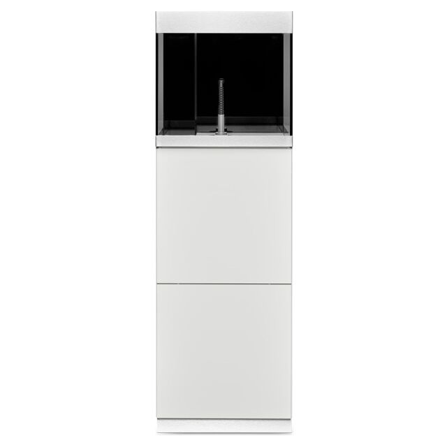 The aquarium made of white glass has a cover with which a separately available lighting is concealed.