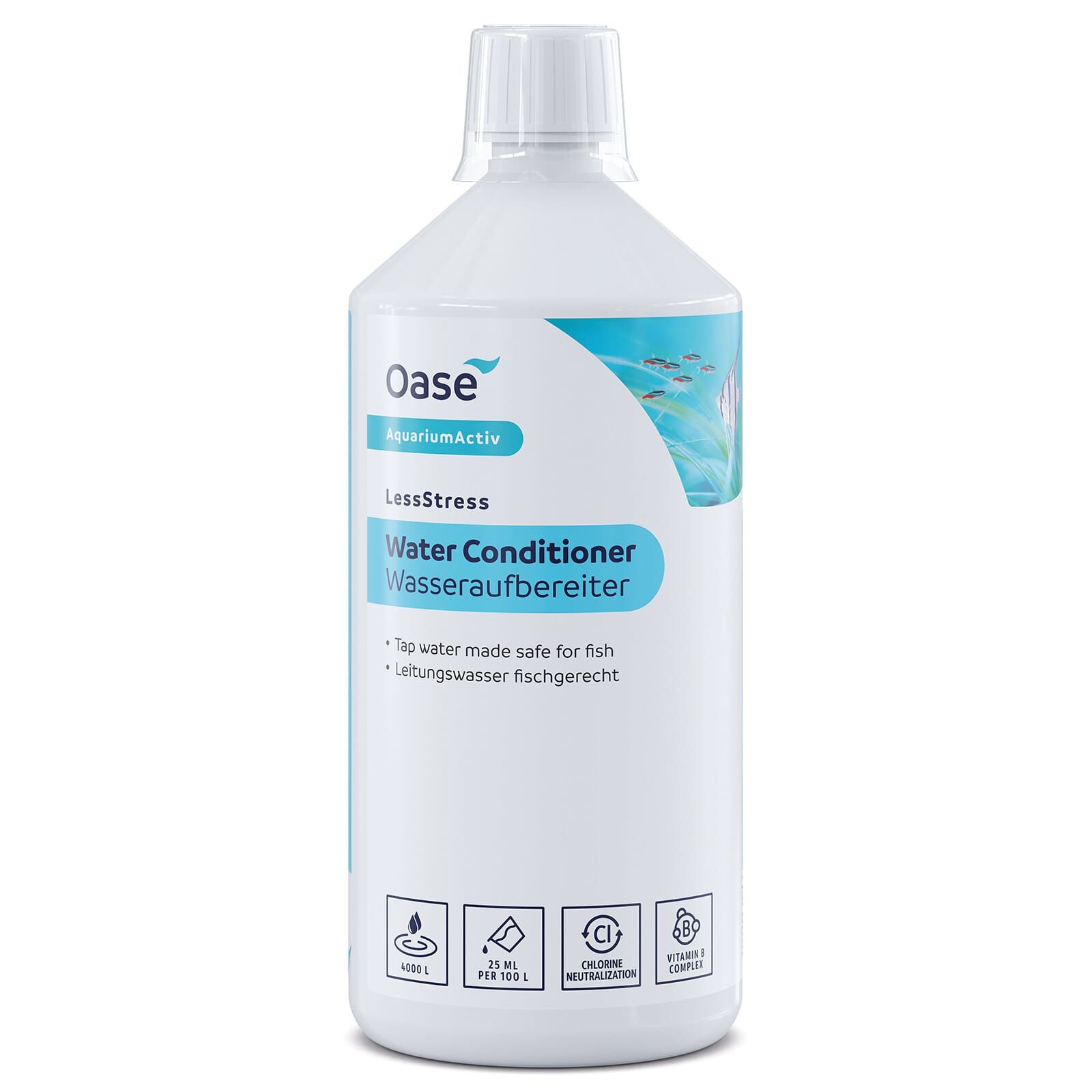 The LessStress Water Conditioner from Oase actively protects the filter bacteria as well as the sensitive mucous membranes of fish. The vitamin B complex it contains helps to reduce stress in ornamental fish. Less Stress also adds vital iodine to freshwater. Less Stress is available in 100, 250, 500, 1.000 and 5.000 ml containers.