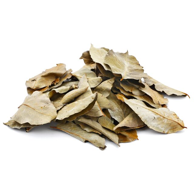 100 % pear leaves (Pyrus communis). Hand-selected green pear leaves, dried, in a resealable zip bag for ideal stock-keeping.
