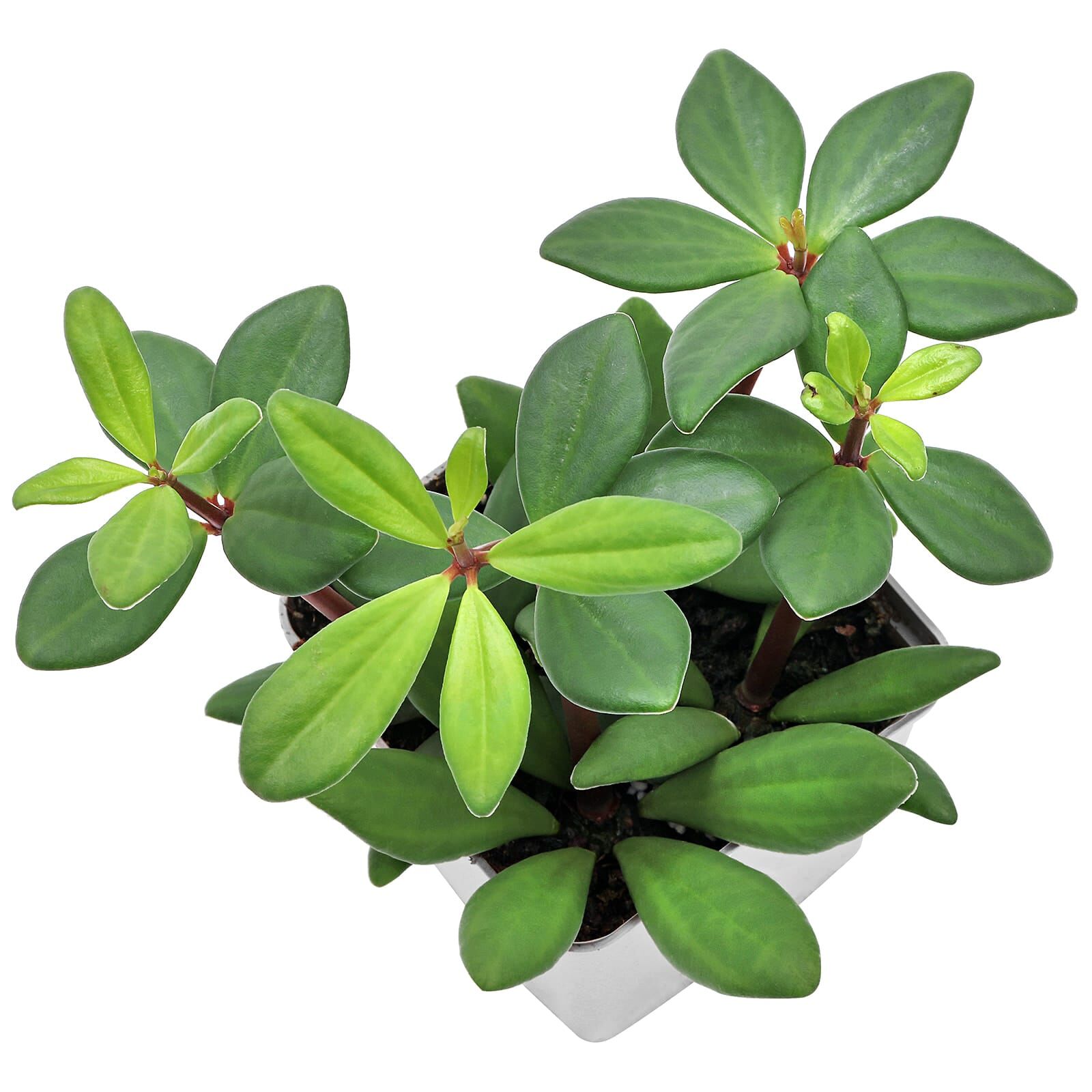 Peperomia pereskiifolia, a charming and robust plant, is originally from the tropical and subtropical regions of South America. It belongs to the pepper family (Piperaceae) and is characterized by its succulent, fleshy leaves, which give it an exceptional ability to store water. This characteristic makes it particularly adaptable to different environmental conditions, making it an ideal choice for terrariums. Peperomia pereskiifolia prefers bright, indirect light and requires a well-drained soil to avoid waterlogging. Its ease of care and adaptability to different light conditions allow it to thrive in a variety of terrarium settings, both in humid and drier environments.