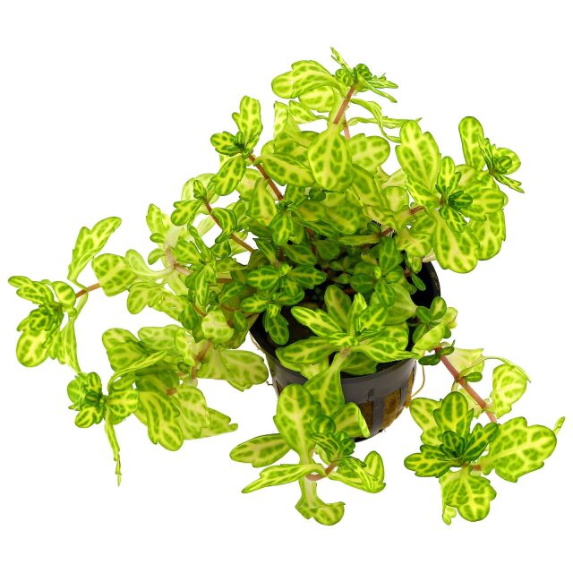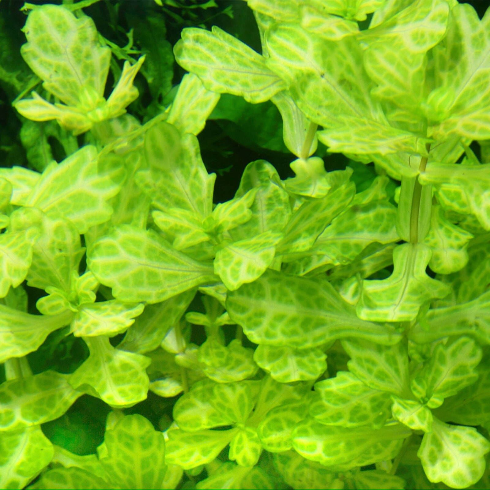 A selection of the Mexican Oak Leaf, distinguished by the white veins on the leaves, 30-60 cm long and up to 10 cm wide stems. The plant grows rapidly and soon reaches the water surface. As well as other stem plants, this plant is easily propagated by cuttings that are pinched off and planted back on the bottom.