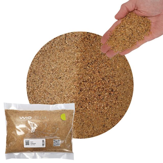 Canyon River Sand aus der WIOdecor-Sands Serie vom Hersteller WIO besteht aus gemischtfarbigen Sandkörnern und erzeugt orangene bis hellbraune Farbakzente. Die Körnung ist leicht variabel und liegt zwischen 0,1 - 4 mm.