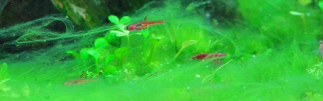 What to do in the event of algae? Our article Algae in the aquarium offers many helpful tips and tricks to identify and fight algae problems. It is vital to not just fight the symptoms, but the cause! Often it's simply a lack of algae eaters, which we cover in more detail in our article Algae eaters in the aquarium. If the algic infestation is getting out of hand, sometimes more drastic measures to control and eradicte algae may be necessary and sensible. In our online shop you can purchase various products for algae reduction and algae prevention, which you will need if you have chosen to execute one of the countermeasures presented in our Aquascaping Wiki.