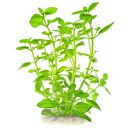 Many aquariums only work harmoniously with tall aquatic plants in the background. Several high-growing aquarium plant classics are suitable for background planting, like from the genera Vallisneria, Aponogeton, Hygrophila, Ludwigia, Limnophila, Myriophyllum and the Rotala rotundifolia-forms. Also various interesting plant novelties and rarities come into question for this area of the aquarium. In conventional plant aquariums, tall plants are often placed on the side walls of the aquarium tank. The aim here is to conceal the rear and side windows with the aquarium plants and to give the impression of a lushly overgrown biotope. High aquatic plant thickets contribute not least to the well-being of many fish and other aquarium inhabitants, offering them quasi-natural retreats. Leaves of high-growing sword plants such as Echinodorus grisebachii 'Bleherae' are often used as spawning grounds by angelfish (Pterophyllum-species). Very long-leaved plants such as the Vallisneria australis and Vallisneria neotropicalis, the Cryptocoryne aponogetifolia, Sivadasan's water trumpet (Cryptocoryne sivadasanii) and Crinum form surface-flooding, current-weighing populations that act like plant populations in flowing waters in appropriately designed biotope aquariums. Stocks of high plants such as Echinodorus palifolius growing out of the water in the background of open aquariums, can remind of reed banks.