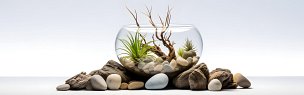 The terrarium is the canvas for creative, nature-inspired arrangements of rock and wood - the so-called hardscape, the floor and plants.